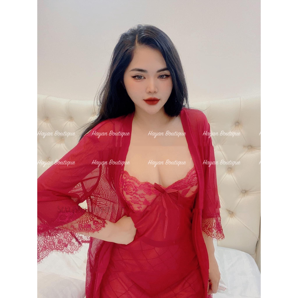 Giới thiệu HT121 Set váy ngủ và áo choàng sexy ren mềm mại xuyên thấu, set đồ ngủ ren tay lỡ gợi cảm HT121