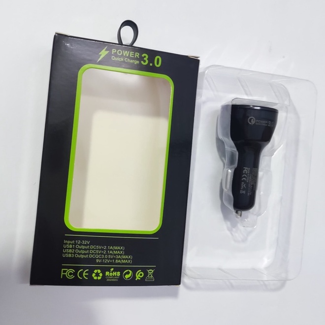 Ô Tô & Xe Máy & Xe Đạp > Phụ kiện bên trong ô tô > Bộ sạc USB, Bộ phát FM & Bluetooth > [HT3U] Tẩu sạc điện thoại nhanh chóng 3 cổng 3.0 chuẩn qc3.0 dành cho xe hơi