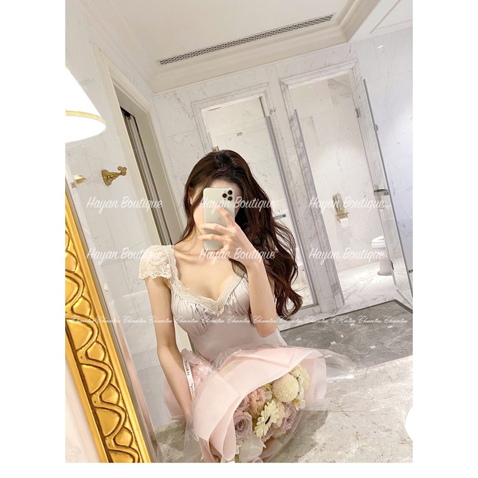 Giới thiệu HT94 Váy ngủ sexy tay lỡ phối ren công chúa, đầm ngủ lụa dáng suông thướt tha HT94