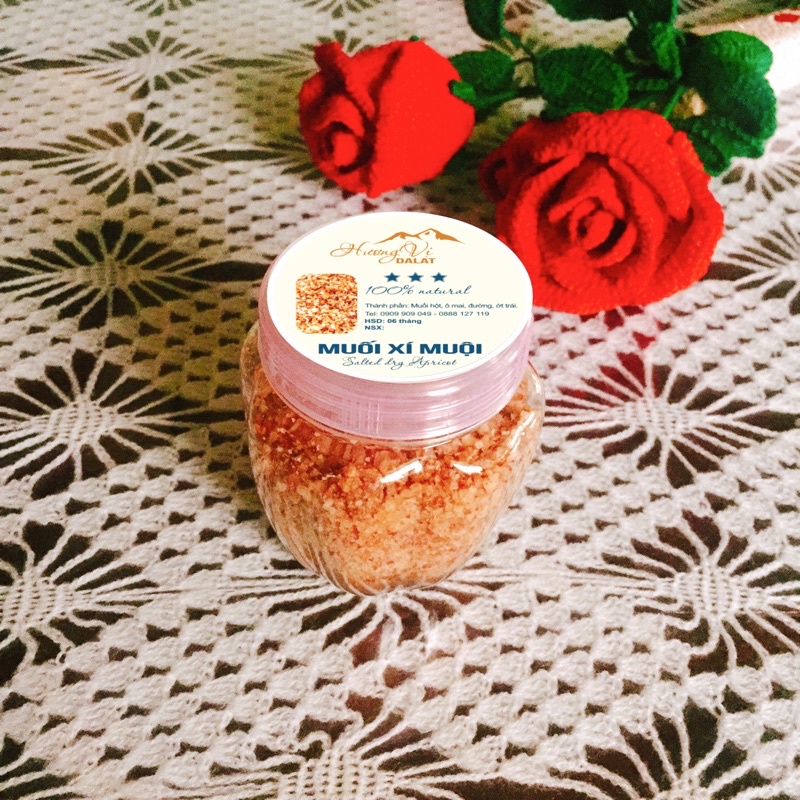 Ngoài muối tôm, muối ớt, bạn còn có thể ăn muối xí muội hay còn gọi là muối ô mai để chấm trái cây tại nhà. -Muối xí muội có nguyên liệu chính là muối hột, ô mai, đường, ớt trái. Với tỉ lệ pha trộn hợp lý, muối xí muội đảm bảo vị cay, mặn, ngọt hấp dẫn vị giác cũng như mùi thơm kích thích. Muối xí muội thường dùng để chấm các loại trái cây như bưởi, ổi, cóc, xoài,... hay điển hình là dâu tây 🍓🍓tươi ngon hết xảy nha. Ngoài ra muối xí muội còn dùng để : 👉Chấm hải sản: Các món hải sản sẽ có hương vị đặc biệt hơn khi dùng kèm với muối xí muội. Chọn muối xí muội chấm hải sản, bạn sẽ cảm nhận được mùi vị của hải sản rất ngon và hấp dẫn mà khó có một loại đồ chấm kèm nào thay thế được. 👉Chấm các món nướng: Các món nướng như thịt heo, thịt gà hay nhiều hải sản gồm: tôm, mực, ốc,... cũng có thể dùng muối xí muội để tẩm ướp hoặc chấm. Không cần thêm bất cứ nguyên liệu nào, chỉ với muối xí muội, các món nướng của bạn vẫn có sự thơm ngon và đậm vị. 👉Chấm với trái cây : Muối xí muội dùng để chấm trái cây là tác dụng phổ biến nhất của sản phẩm này. Xí muội trong muối giúp kích thích vị giác làm nổi bật được hương vị của trái cây. - Khối lượng : 100G - Quy cách đóng gói: Hủ nhựa - Ngày sản xuất : in trên bao bì - Hạn sử dụng : 6 tháng kể từ ngày sản xuất. - Xuấy xứ: Đà Lạt - Lâm Đồng - Bảo quản nơi khô ráo, thoáng mát tránh ánh nắng trực tiếp.