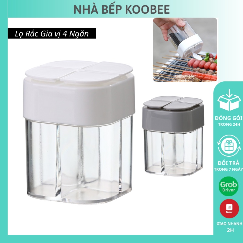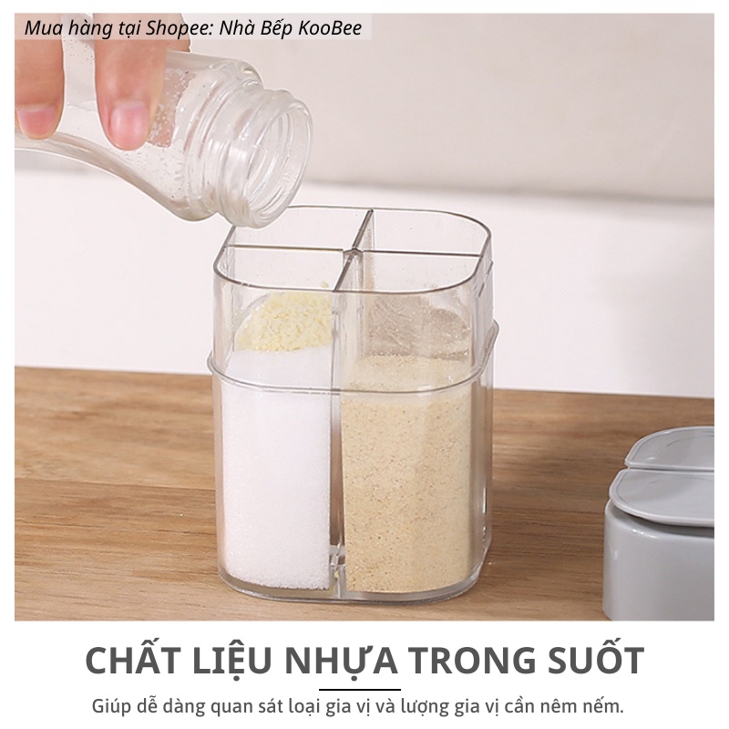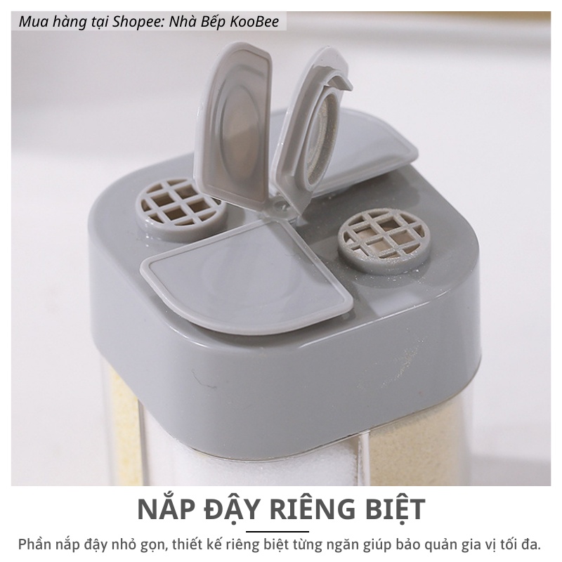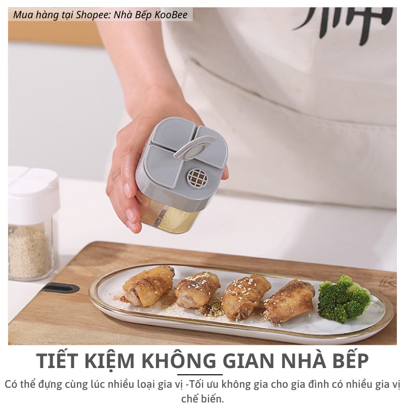 🔰TÊN SẢN PHẨM: Hũ đựng gia vị 4 ngăn có lỗ rắc - Lọ rắc gia vị cao cấp bằng nhựa trong suốt KooBee (NB45)