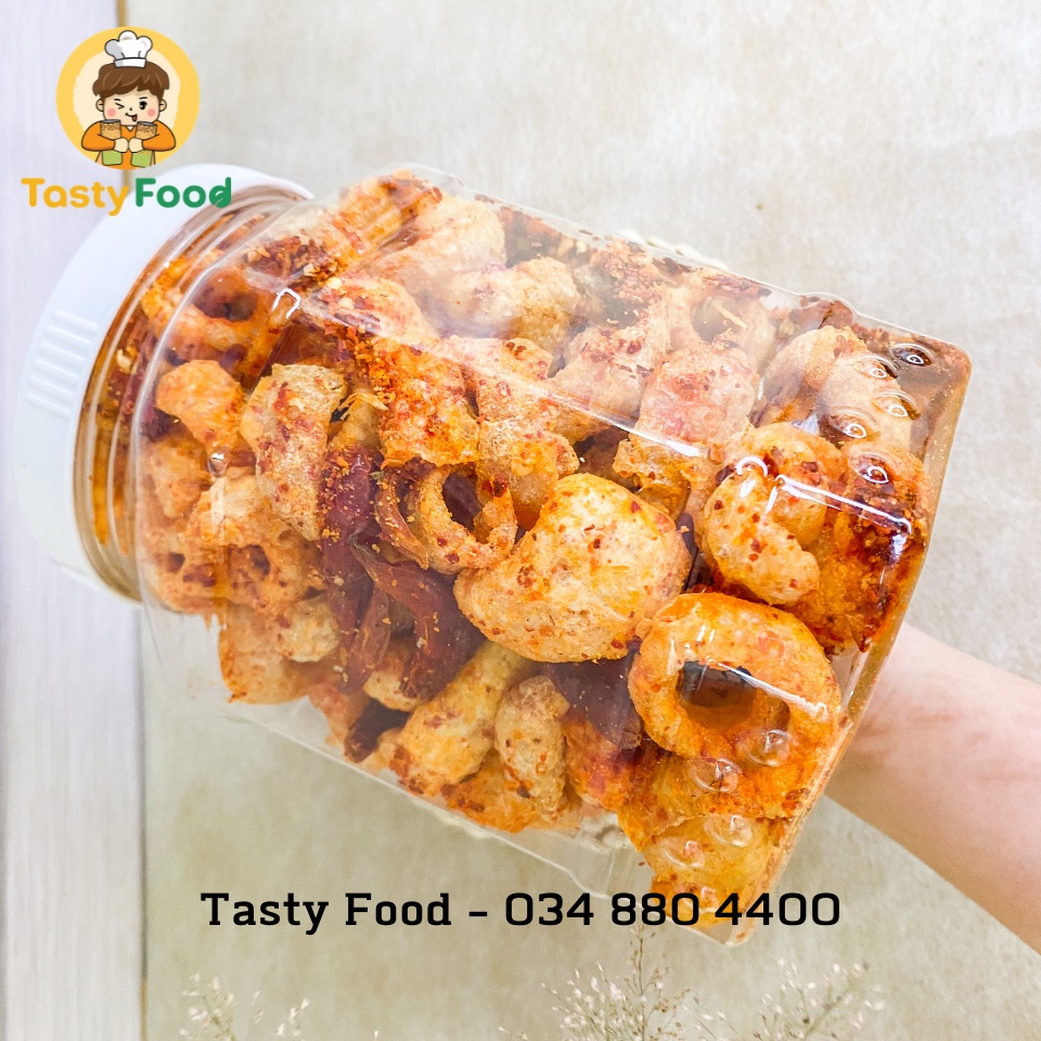 Giới thiệu [Hũ vuông] 500G Hũ Da Heo Muối Ớt Tasty Food| Hàng chất lượng loại nhất | HOÀN ĐỔI 100% nếu không như mô tả