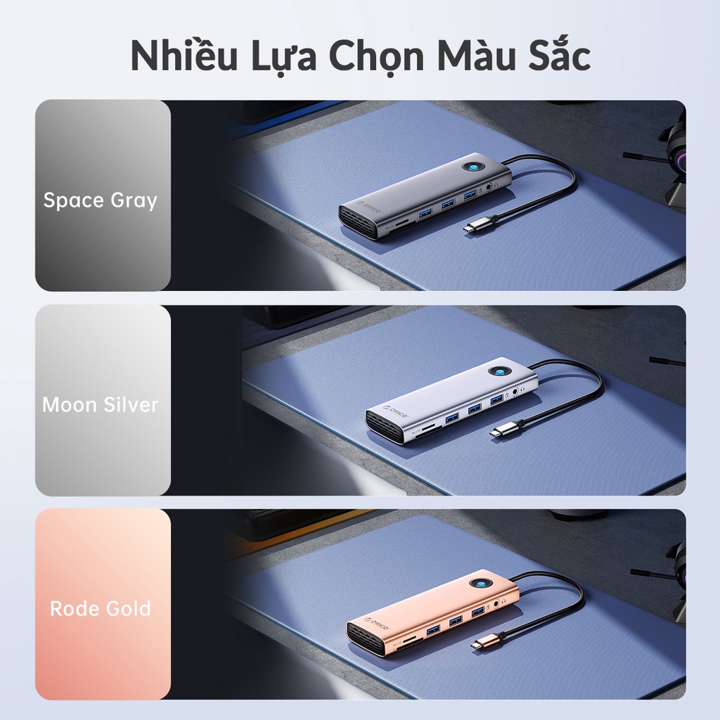Máy Tính & Laptop > Phụ Kiện Máy Tính > Bộ chia cổng USB & Đọc thẻ nhớ > Hub USB Type C HDMI 4K PD 100W RJ45 SD TF VGA ORICO PW11 | Bộ chia cổng cho Laptop PC