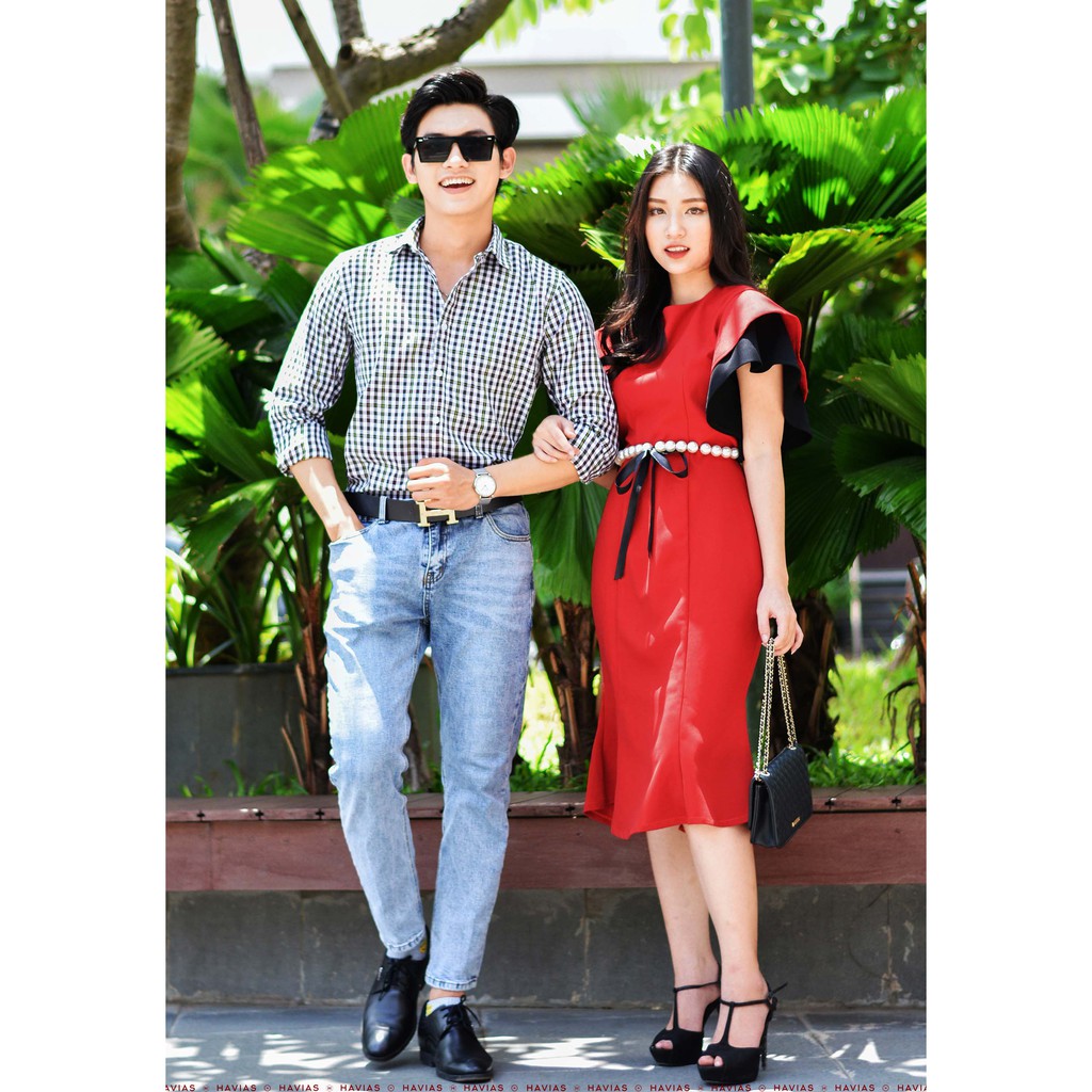 Giới thiệu Đồ đôi Đầm Sơ Mi Couple Premium Color Cross Shirt & Pearl Belt Dress HAVIAS