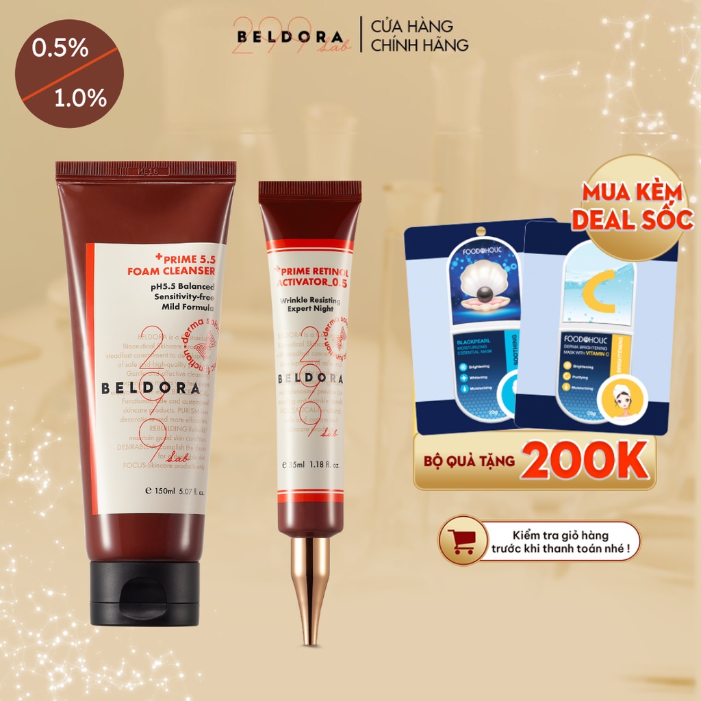 1. KEM DƯỠNG RETINOL CHỐNG LÃO HÓA, NGĂN NGỪA NẾP NHĂN BELDORA 299 PRIME RETINOL ACTIVATOR 35ML X1 2. SỮA RỬA MẶT DÀNH RIÊNG CHO DA NHẠY CẢM BELDORA 299 PRIME 5.5 FOAM CLEANSER 150ML X1