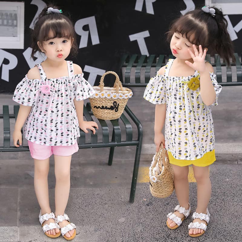 Sét áo 2 dây kèm bông hoa- áo trễ vai điệu đà