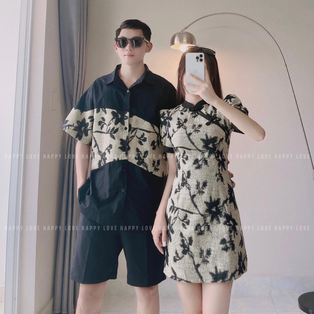 Giới thiệu Đồ đôi nam nữ couple set sườn xám nữ sơ mi nam vải gấm hoa cao cấp Quảng Châu HAPPYLOVE H92