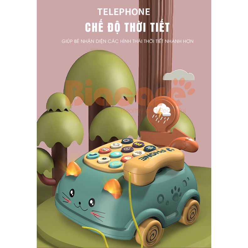 Đồ chơi điện thoại mô hình ô tô mèo con giúp bé nhận diện các chức năng điện thoại và trạng thái thời tiết