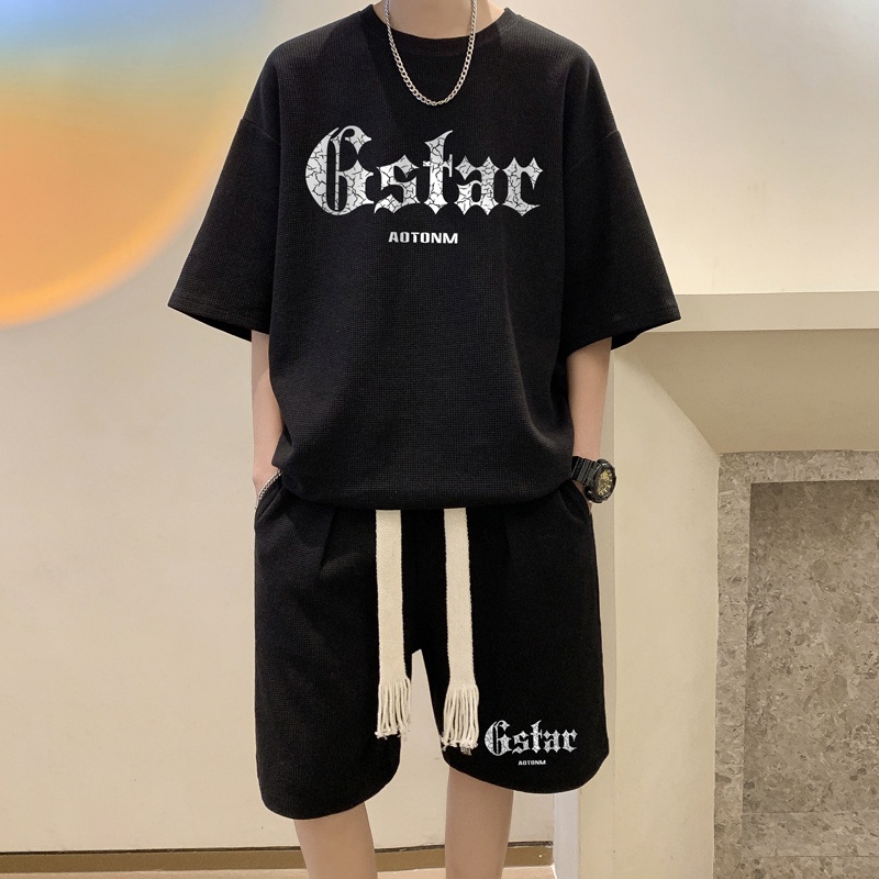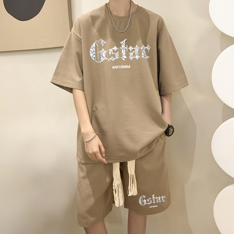# Áo phông nam # Với tay áo ngắn # Quần short # Bộ vest # Mới # Nóng bức # Xu hướng # Cổ áo tròn # Đã in