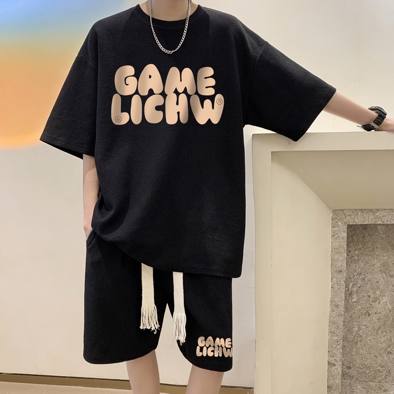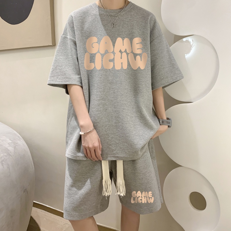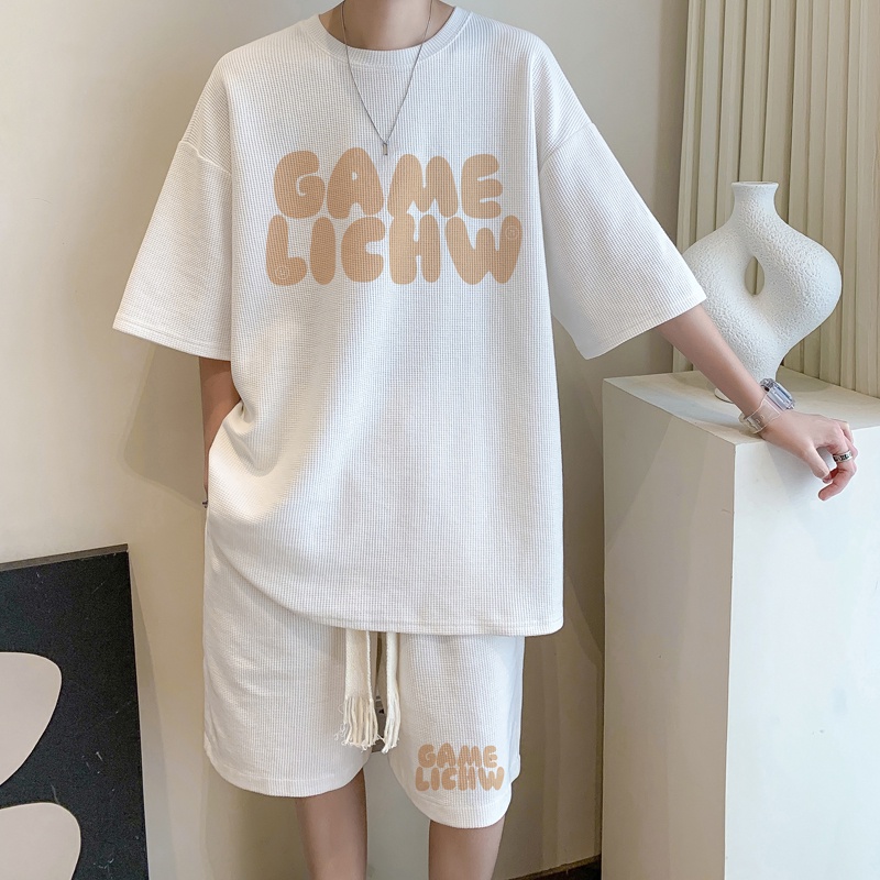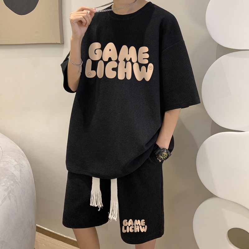 Giới thiệu Ifnicefuture Waffle Áo Thun + Quần Short size Lớn Phong Cách Hong Kong Cho Nam Nữ