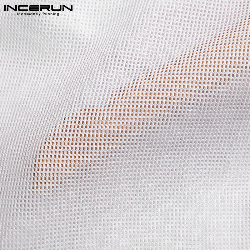 Giới thiệu INCERUN Quần ống rộng Màu Trắng Phối Lưới Xuyên Thấu Thời Trang Cho Nam