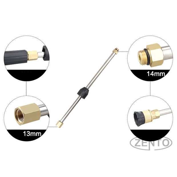 Thanh Inox nối dài cho súng rửa xe áp lực cao _ Các bạn vui lòng nhìn vào hình trên để biết súng của mình có dùng được thanh này hay không _ Nối dài súng thêm ~30cm để súng xịt xa hơn, tia nước bắn cao hơn, thích hợp vệ sinh những nơi cao như mái nhà,v,,,hay xịt rửa gầm xe Ôtô. _ Do là thanh Inox nên chịu áp lực nước tốt hơn, bền hơn