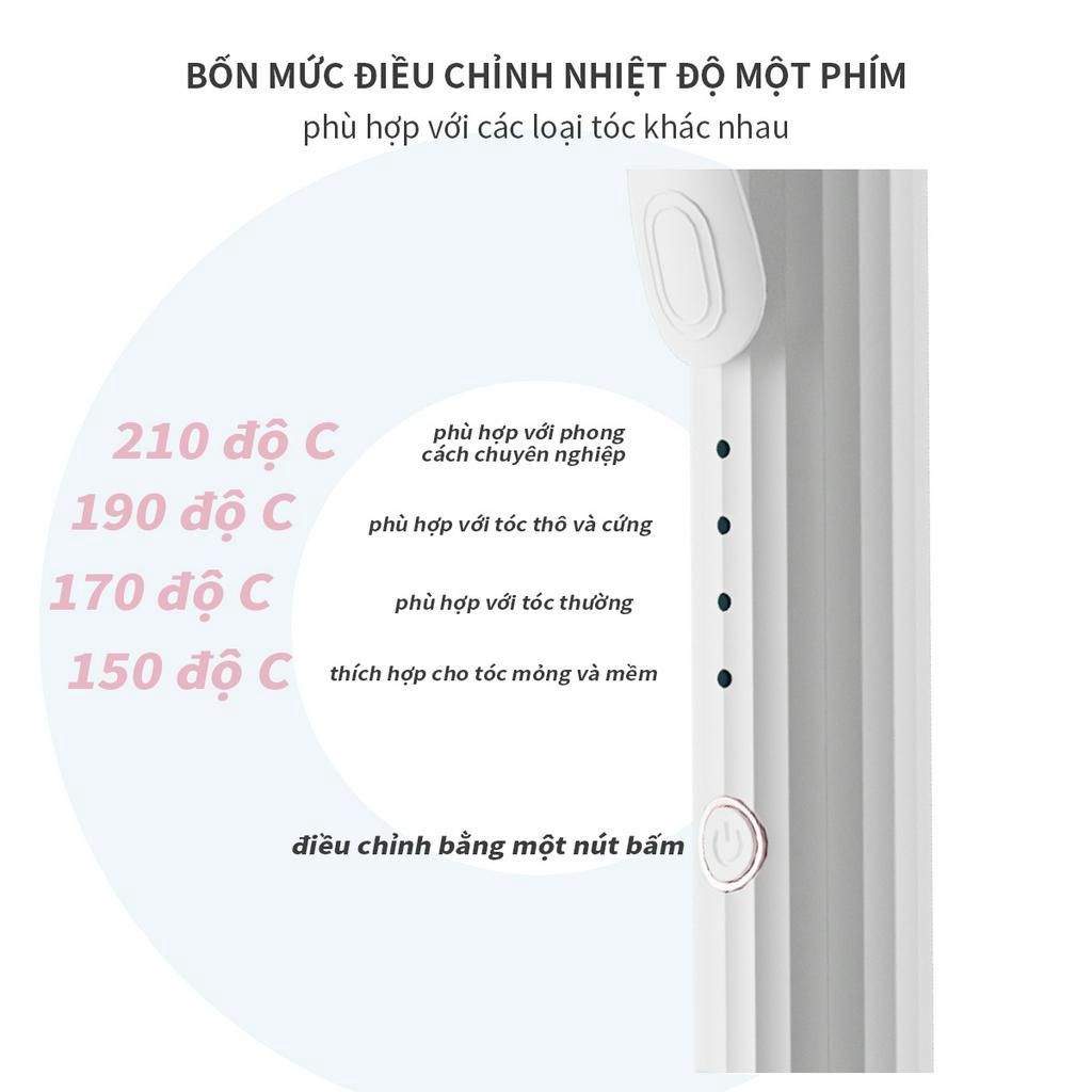 💥 ĐẶC ĐIỂM NỔI BẬT 1-Chăm sóc tóc chống tĩnh điện bằng men sứ 2--4 mức điều chỉnh nhiệt độ, đáp ứng nhiều nhu cầu uốn tóc khác nhau 3- Công suất định mức 40-59W, làm nóng nhanh 30 giây 4- Chiều dài nhiệt 140mm, phù hợp với tóc ngắn, trung bình và dài 5-Chế độ tự động ngắt điện/bảo vệ quá nhiệt, tự ngắt sau 1 giờ, an toàn và yên tâm khi sử dụng