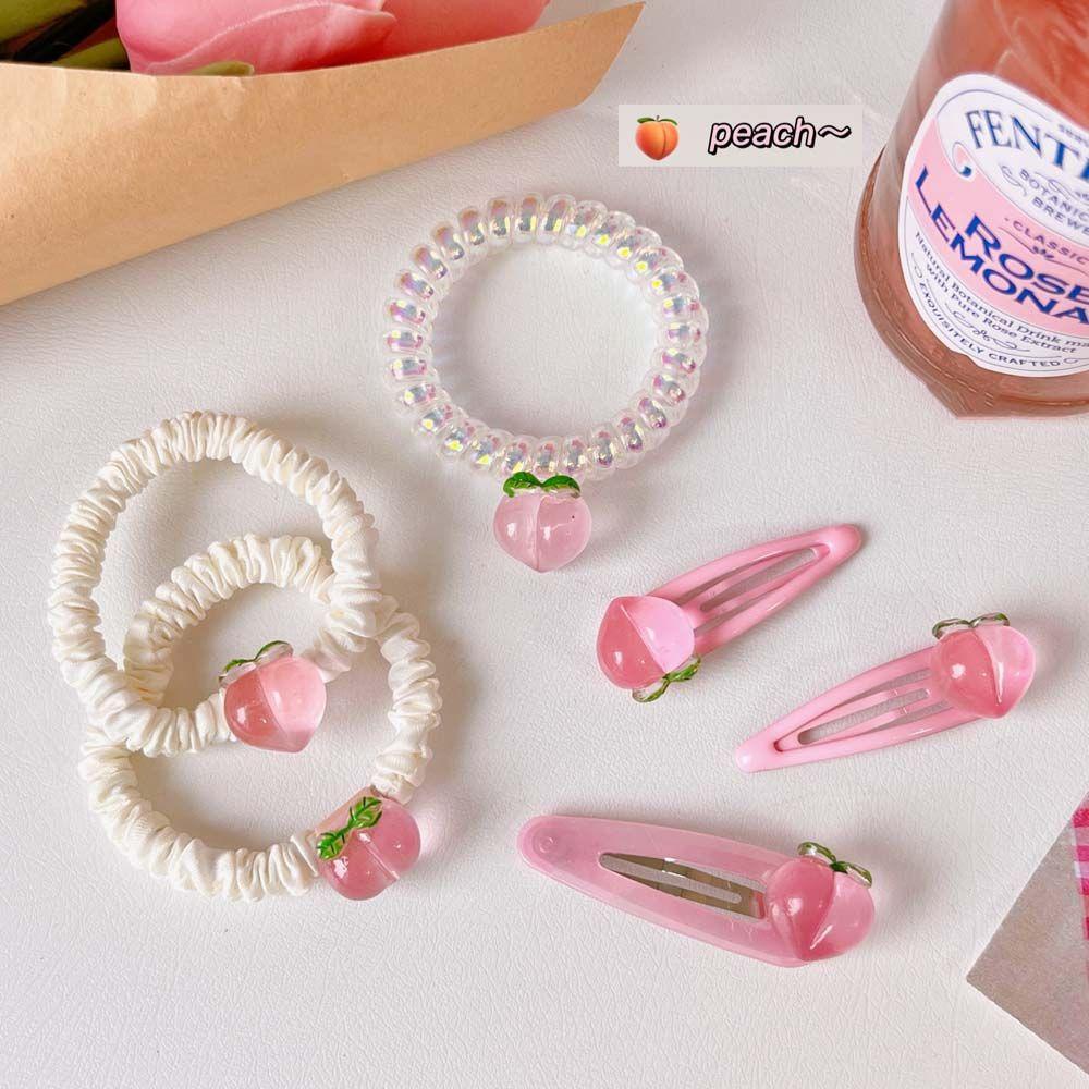 Gói bao gồm " 1 Kẹp tóc PC Kẹp tóc đào Phong cách Hàn Quốc Dây buộc tóc nữ Phụ kiện tóc Dây điện thoại Vòng tóc màu hồng Mũ đội đầu trái tim mùa xuân đào Vòng tóc trẻ em Dây tóc BB Kẹp tóc Cô gái Đơn giản Dễ thương Ngọt ngào