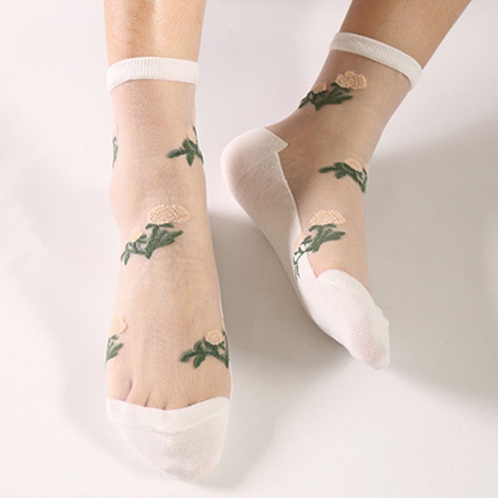 Thời Trang Nữ > Vớ/ Tất > Tất > Jacquard Rose cotton Glass Silk Flower Socks