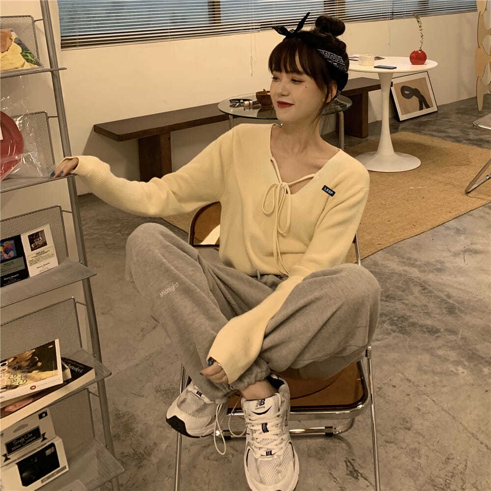 Giới thiệu Jiashucheng Áo Len Tay Dài Cổ Chữ V Thắt Dây Phong Cách Hàn Quốc Thanh Lịch Dành Cho Nữ