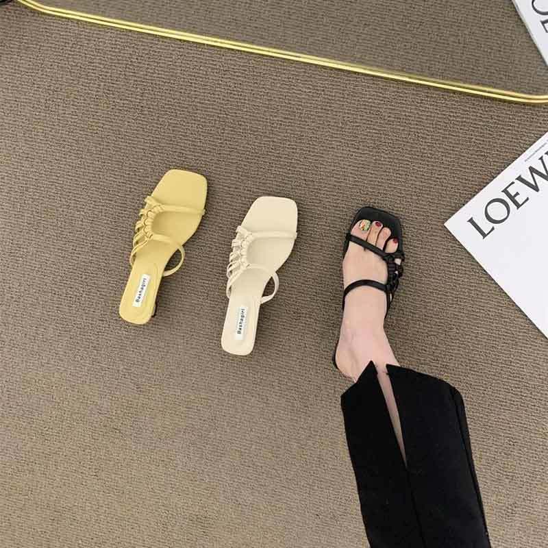 Giới thiệu Jiashucheng Dép Sandal Cao Gót Mũi Vuông Hở Ngón Phong Cách Quyến Rũ