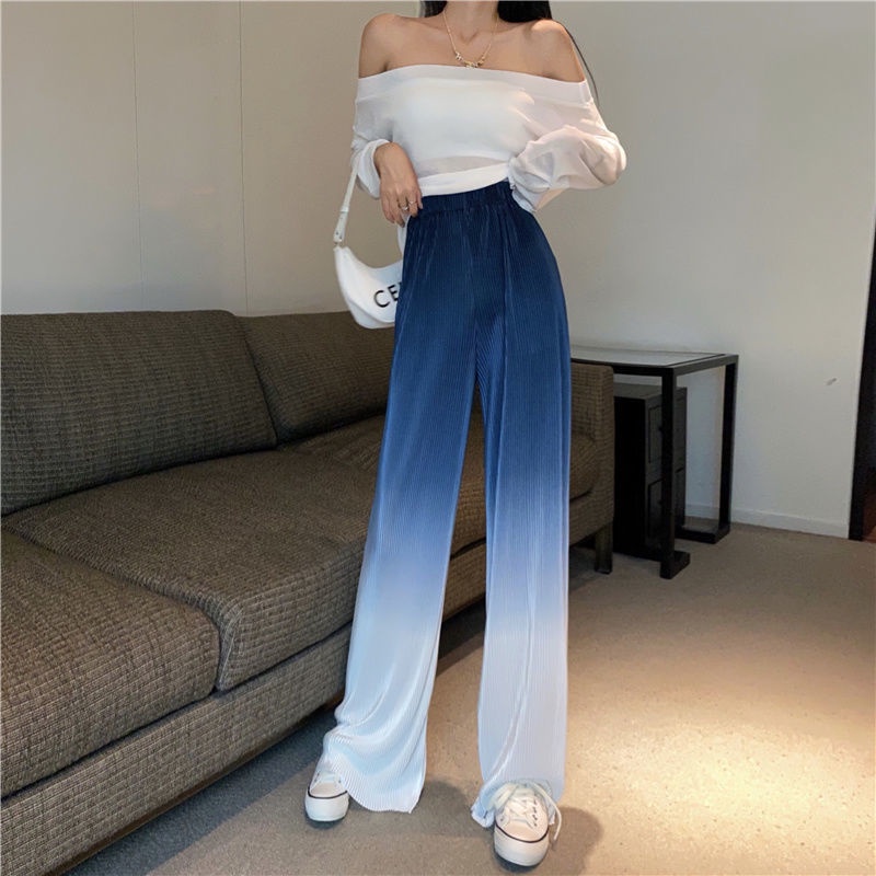 Giới thiệu Jiashucheng Hàng Có Sẵn Quần Ống Rộng Lưng Cao Xếp Ly Nhuộm Màu Gradient Phong Cách Mới Dễ Phối Đồ Cho Nữ