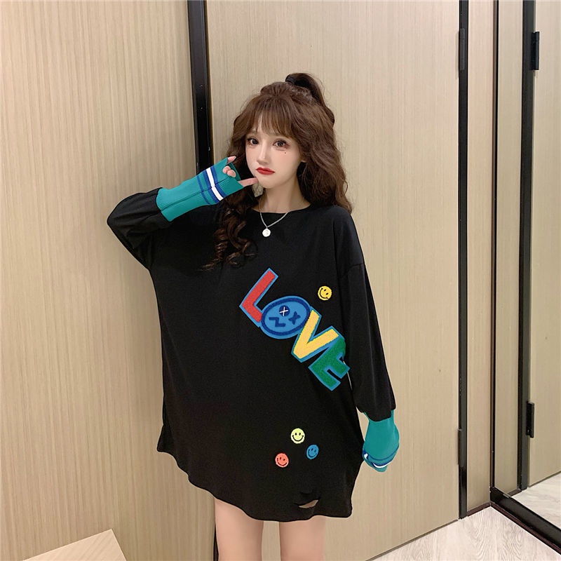 Giới thiệu Jiashucheng Plus Size Áo Thun Tay Dài Phong Cách Phương Tây Thời Trang Xuân Thu Dễ Phối Đồ Màu Sắc Tương Phản Cho Nữ