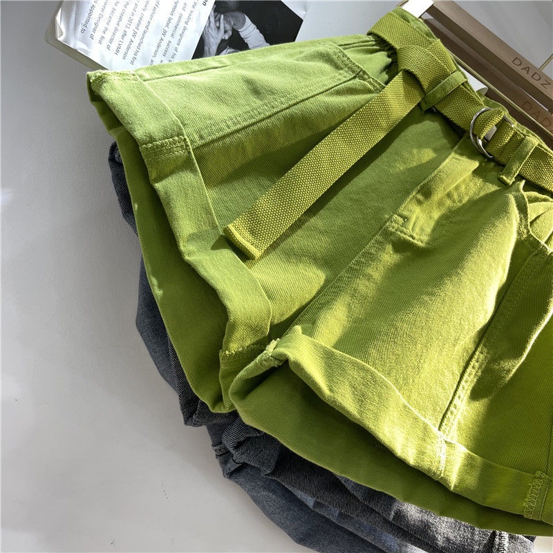 Giới thiệu Jiashucheng Quần Short Jean Ống Rộng Lưng Cao Xoăn Màu Xanh Lá Cây Cỡ Lớn Dễ Phối Đồ Thời Trang Mùa Hè Mới