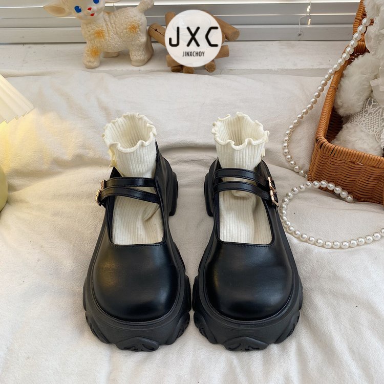 Giới thiệu JINxCHOY Giày Mary Jane Mũi Tròn Đế Dày Màu Trơn Phối Khóa Cài Phong Cách Ulzzang Mới