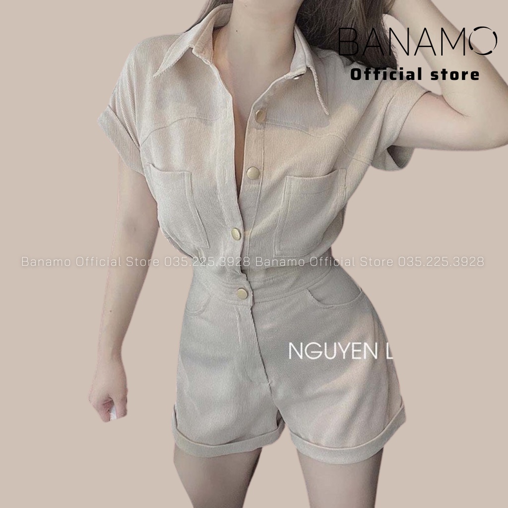 Video giới thiệu sản phẩm Bộ Jumpsuit cổ sơ mi liền quần gập gấu chất nhung tăm thời trang Banamo Fashion set Jumpsuit 151. Nguồn: Shopee.