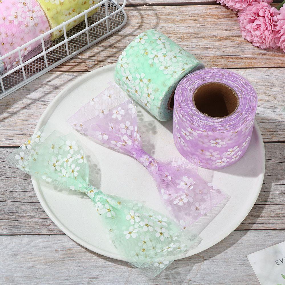 Giới thiệu JUNE Cuộn Ruy Băng Vải Tuyn Lưới Họa Tiết Hoa Cúc 6cm 25Yards