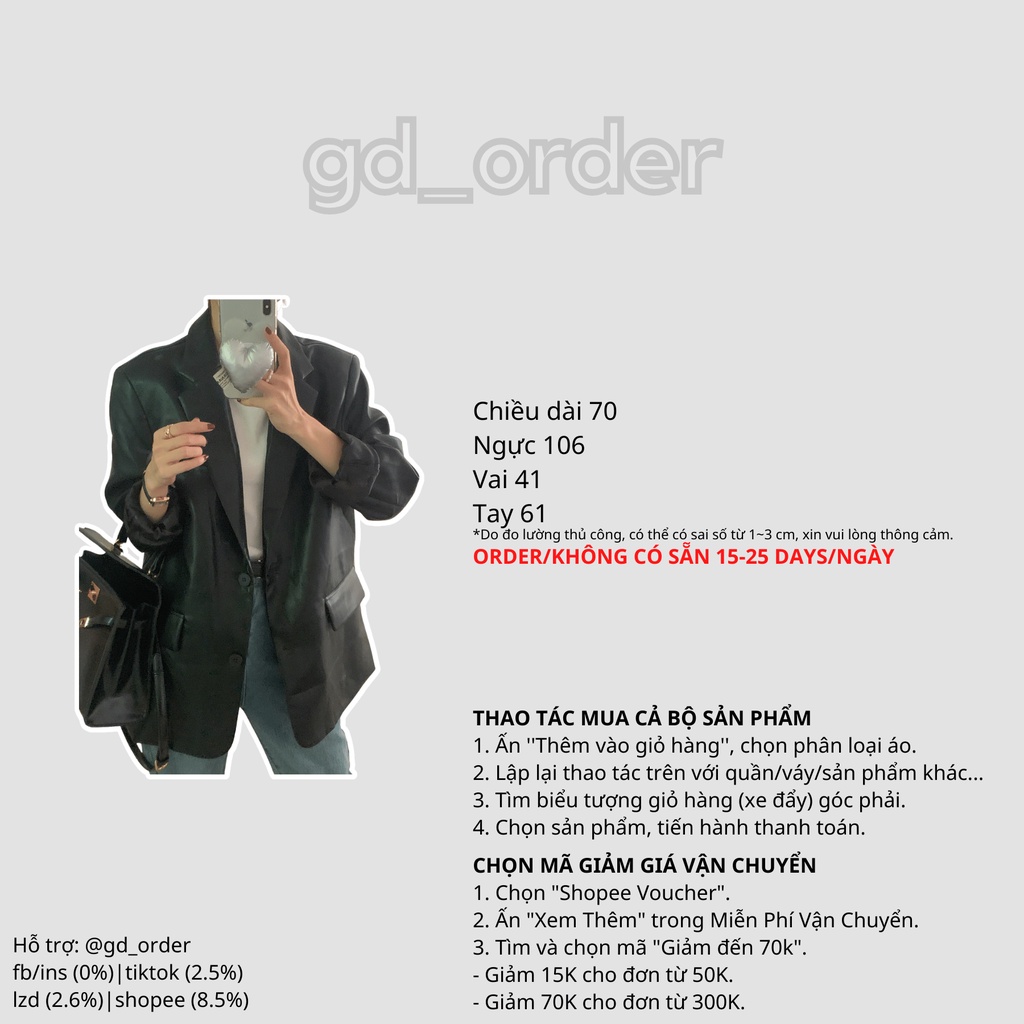THÔNG TIN SẢN PHẨM GD OFFICIAL K73|Áo khoác blazer da PU nữ khóa kéo dáng dài năng động màu đen, be gd_order Chất liệu: Thông tin kích thước: vui lòng xem tại mục hình ảnh chi tiết. Xuất xứ: Trung Quốc Cửa hàng Taobao: Vibe the new fashion Địa chỉ: Khu nhà C, Tòa nhà D, Số 92, Phố Shimawangfa, Phố Junhe, Quận Bạch Vân, Thành phố Quảng Châu, Trung Quốc.