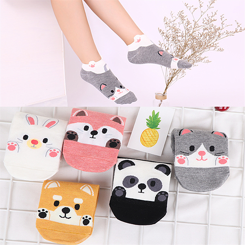 Giới thiệu Kawaii Animal Printed Ankle Socks Women Girl Cat Slipper Socks Target 100 Cotton Loafer Socks Low Cut Socks Non Slip White Socks