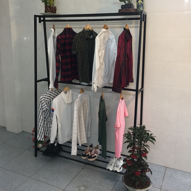 Kệ chữ a 2 tầng treo quần áo cho shop Kích thước kệ cao 2m dài 1.5m Kệ tháo rời lên dễ dàng khi vận chuyển Giá bán 800k một sp Kệ chắc chắn lên shop có thể treo nặng bao nhiêu tuỳ ý Kệ bằng sắt sơn tĩnh điện lên có độ bền cao Kệ được làm bằng ống sắt phi 25 lên đảm bảo được đồ bền đẹp và chắc chắn trong quá trình sử dụng Kệ có hai tầng cách nhau 1,1m nên khi dùng để treo quần áo không lo bị chạm nhau Kệ có thang để đồ ở dưới có thể dùng để giầy dép