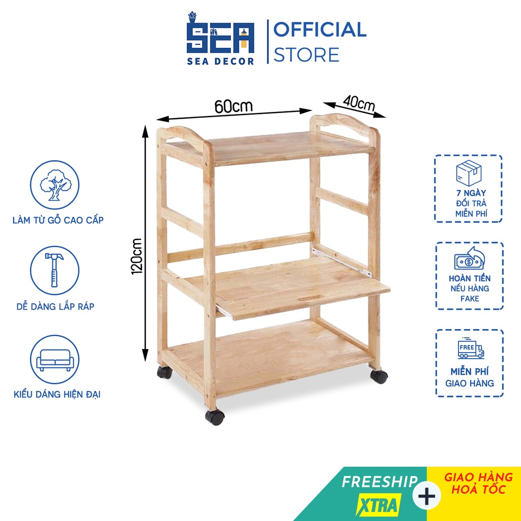 Nhà Cửa & Đời Sống > Đồ dùng nhà bếp và hộp đựng thực phẩm > Dụng cụ chứa, đựng > Kệ để lò vị sóng 3 tầng SEADECOR bằng gỗ cao su siêu bền chắc tiện lợi thích hợp trong không gian phòng bếp