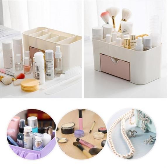 Kệ đựng mỹ phẩm, hộp đồ trang điểm mini tiện dụng đa năng để bàn Cả thế giới của chị em mình thu gọn trong chiếc hộp siêu cute này. Có thể để ở nhà vệ sinh, bàn làm việc, bàn trang điểm, siêu đẹp, siêu tiết kiệm, siêu bền. Chất liệu: Nhựa nguyên chất Hướng dẫn bảo quản: + Tránh tiếp xúc với nước và hóa chất. + Sử dụng khăn mềm lau khô và bảo quản trong bịt hoặc hộp khi không sử dụng . ⛔ Cam kết: - Hàng đúng chất lượng, đúng mẫu mã, hình ảnh, video minh họa. - Lưu ý khách chọn nhầm mẫu ,muốn đổi trả hàng vui lòng chịu hoàn toàn phí ship 2 chiều giúp shop ạ - Đổi mới 100% nếu có lỗi của nhà sản xuất.