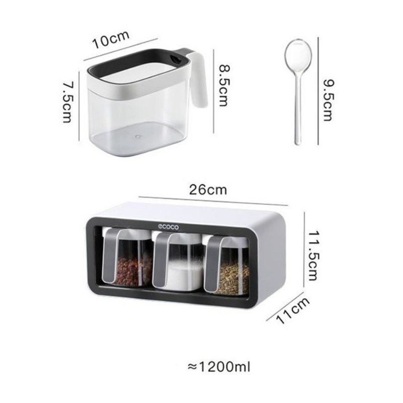 Nhà Cửa & Đời Sống > Đồ dùng nhà bếp và hộp đựng thực phẩm > Dụng cụ chứa, đựng > Kệ gia vị kèm thìa ECOCO cao cấp 2 ngan và 3 ngăn không cần khoan tường