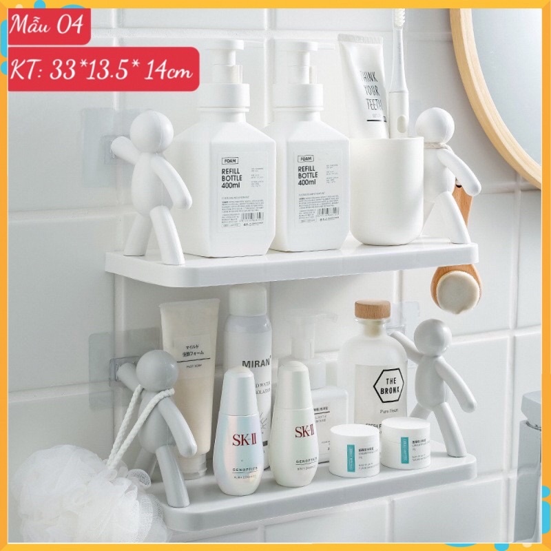 Kệ Hình Nhân Decor Nhà Tắm, Kệ Nhựa Nhà Bếp Dán Tường Siêu Dính Chịu Lực Kệ phòng tắm hình nhân để đồ dán tường để đồ nhà bếp chất liệu nhựa PP chắc chắn tiện lợi không cần khoan đục