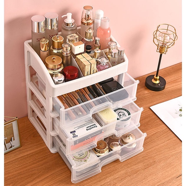 Bạn có phải đang có rất nhiều các loại mỹ phẩm và đồ trang điểm, son môi.. ngổn ngang trên bàn trang điểm và cảm thấy chiếc bàn trang điểm của mình thiếu đi sự gọn gàng, ngăn nắp cho dù bạn đã thường xuyên sắp xếp lại chúng ? Giờ đây với Kệ đựng mỹ phẩm 4 tầng trong suốt , bạn sẽ thêm yêu chiếc bàn trang điểm của mình mỗi ngày CHỨC NĂNG CƠ BẢN CỦA SẢN PHẨM Kệ Đựng Mỹ Phẩm Đồ Trang Điểm Trang Sức 4 Tầng Ngăn Kéo chất liệu nhựa PP bền đẹp và chắc chắn là sản phẩm tiện dụng cho các bạn nữ trên bàn trang điểm . Thiết kế vô cùng tiện dụng bao gồm : 3 ngăn kéo lớn để bạn đựng đồ dùng , trang sức và đồ trang điểm và ngăn trên cùng được chia 6 ô để bạn tận dụng đựng các loại mỹ phẩm như : nước hoa , son môi .... Chất liệu nhựa PP bền bỉ chống bể cho dù bạn làm rơi sản phẩm từ trên bàn xuống đất thì kệ cũng ko bể được . Thiết kệ nhựa trong suốt mờ để bạn có thể quan sát và sắp xếp dụng cụ bên trong ngăn kéo kệ . Kích thước lớn vừa đủ để bạn đựng gọn gàng tất cả đồ dùng , trang sức và đồ trang điểm trên bàn trang điểm . Thiết kế kéo trượt ra vào nhẹ nhàng .. Sản phẩm không những tiện dụng mà còn làm đẹp thêm không gian phòng ngủ đặc biệt là bàn trang điểm của bạn. - Kệ Đựng Mỹ Phẩm Đồ Trang Điểm Trang Sức 4 Tầng Ngăn Kéo Bền Đẹp chất liệu nhựa PP bền đẹp và chắc chắn là sản phẩm tiện dụng cho các bạn nữ trên bàn trang điểm . - Thiết kế vô cùng tiện dụng bao gồm : 3 ngăn kéo lớn để bạn đựng đồ dùng , trang sức và đồ trang điểm và ngăn trên cùng được chia 6 ô để bạn tận dụng đựng các loại mỹ phẩm như : nước hoa , son môi - Chất liệu nhựa PP bền bỉ chống bể cho dù bạn làm rơi sản phẩm từ trên bàn xuống đất thì kệ cũng ko bể được . Thiết kệ nhựa trong suốt mờ để bạn có thể quan sát và sắp xếp dụng cụ bên trong ngăn kéo kệ . - Kích thước lớn vừa đủ để bạn đựng gọn gàng tất cả đồ dùng , trang sức và đồ trang điểm trên bàn trang điểm . Thiết kế kéo trượt ra vào nhẹ nhàng . - Sản phẩm không những tiện dụng mà còn làm đẹp thêm không gian phòng ngủ đặc biệt là bàn trang điểm của bạn. 🔐 THÔNG TIN SẢN PHẨM: + Tên sản phẩm: Kệ Đựng Mỹ Phẩm Đồ Trang Điểm Trang Sức 4 Tầng Ngăn Kéo + Kích thước sản phẩm: 28,5 x 19 x 25.5cm ( Dài x Sâu x Cao ) + Chất liệu: Nhựa PP đẹp chống bể. #hopmypham4tang #kemypham4tang #kemypham4tangtrongsuot #kemypham #kemyphamtrongsuot