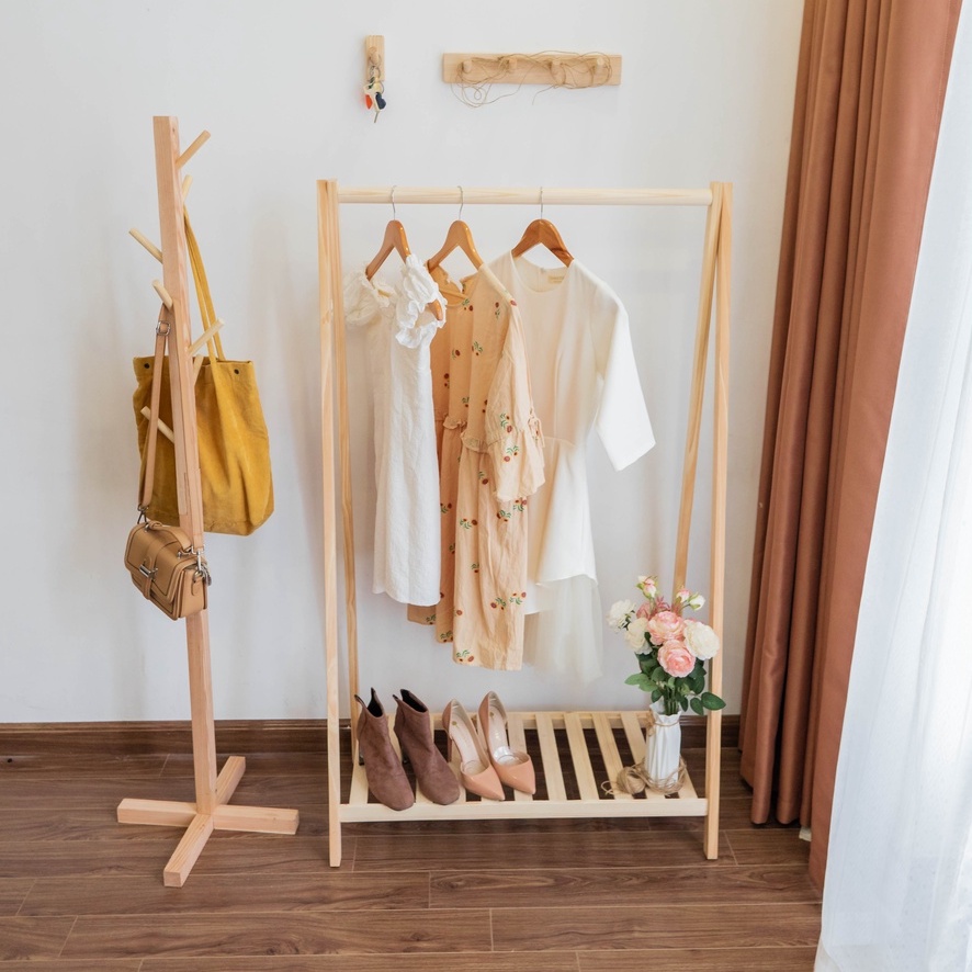 🍀 CÔNG DỤNG SẢN PHẨM - Kệ treo quần áo gỗ dùng để treo và cất giữ quần áo trong phòng ngủ thay thế tủ đồ. - Giá gỗ thông treo đồ đa năng phù hợp cho Shop thời trang treo các sản phẩm quần áo . - Phù hợp với các căn hộ nhỏ, chung cư, dịch vụ homestay,... - Kệ Treo Quần Áo Chữ A 2 Tầng dễ dàng tháo lắp, di chuyển & tùy biến mục đích sử dụng theo ý muốn.