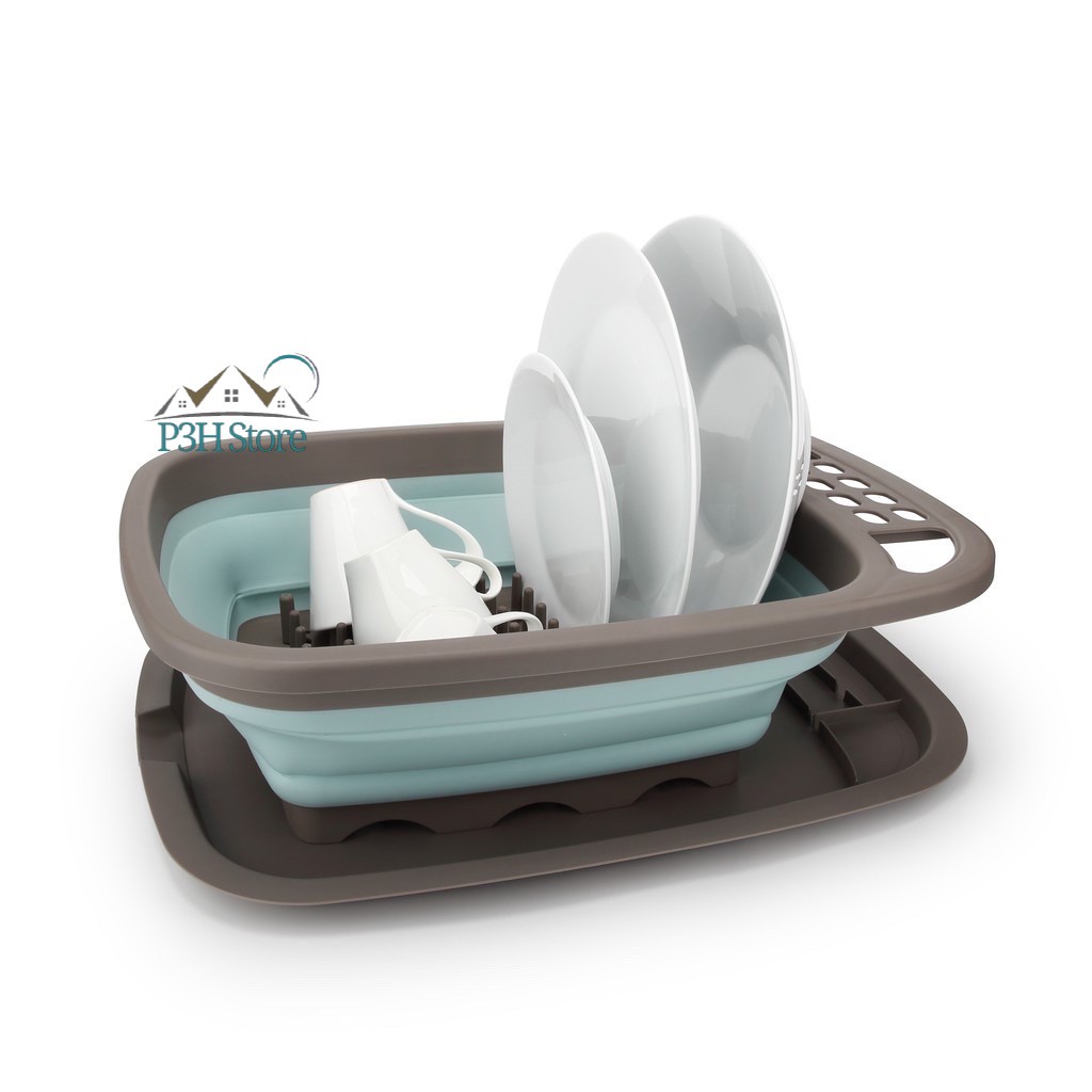 Kệ úp chén dĩa gấp gọn kèm khay hứng nước LDR140GRY Kích thước : 48 x 37.5 x 6.3 cm Xuất xứ : Trung Quốc Chất liệu : Nhựa PP, TPR