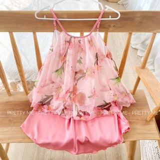 Giới thiệu Kelly set - đồ mặc nhà, đồ ngủ hai dây áo tơ hoa kết hợp quần lụa Satin