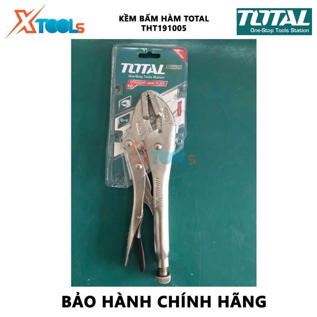 - Kềm bấm chết 10in Total THT191005 là dụng cụ cầm tay có chức năng dùng để giữ, kẹp, vặn, mở bulong, đai ốc,… phù hợp cho các ngành nghề: công nghiệp cơ khí, chế tạo, sửa chữa, lắp ráp, v.v.