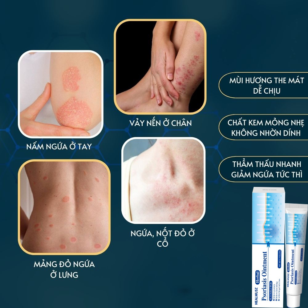 Kem Bôi Vảy Nến PSoriasis Ointment vảy nến , á sừng , lang ben , hắc lào - 20gr Thương hiệu: Healmusz Dung tích: Kem Bôi 20g Kem bôi vẩy nến sản xuất tiêu chuẩn nhà máy xuất khẩu sang Mỹ Thành phần 100% thảo dược tự nhiên an toàn lành tính