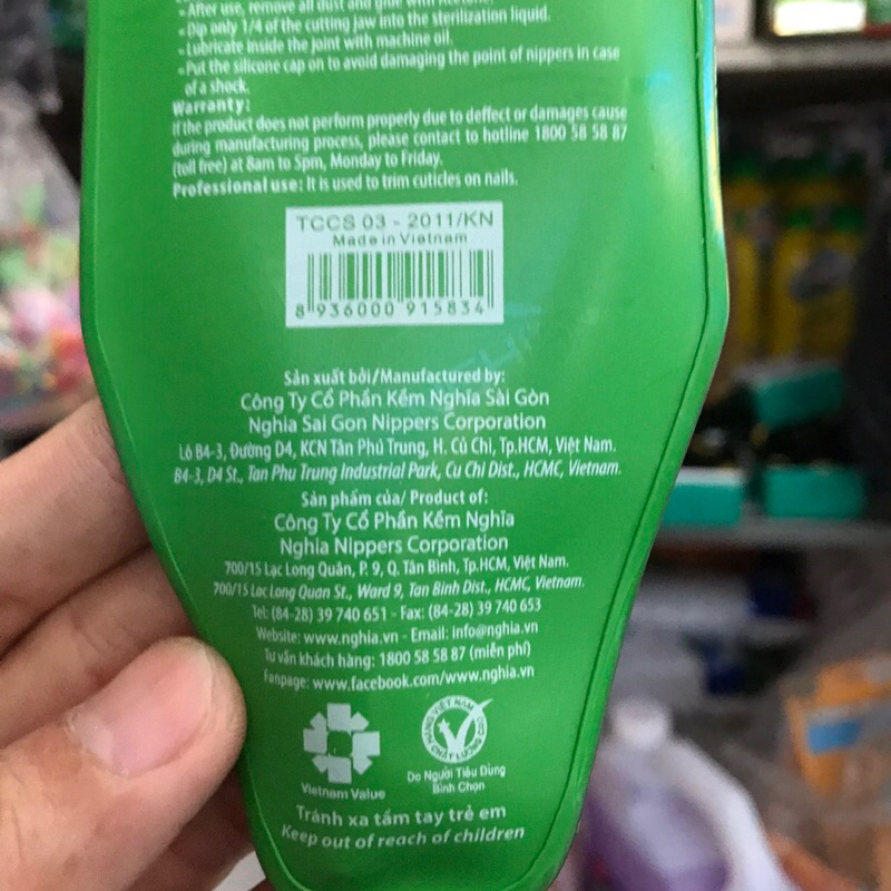 Chất liệu: Thép carbon, an toàn cho người dùng. Màu sắc: Mạ vàng 24k Kiểu chống: 1 chống. Kiểu mang: 2 mang vuông. Kích thước: Full Jaw. Trọng lượng: 52 gr. Loại bao bì Bao Simili Thiết kế Thiết kế kiểu dáng phù hợp với bàn tay người Châu Á. Lưỡi kềm sắc mỏng, tinh xảo, độ chính xác cao nên cắt chính xác gọn gàng không làm tổn thương da khi cắt. Lưỡi kềm bén ngọt, độ bền lâu dài, không cần mài lại khi mua. Sản phẩm được sản xuất theo chuẩn ISO 9001 - 2015. Thương hiệu Kềm Nghĩ được người tiêu dùng và thợ chuyên nghiệp ưu tiên lựa chọn hơn 20 năm, đạt được nhiều giải thưởng như: Hàng Việt Nam chất lượng cao, Thương hiệu quốc gia. Mô tả: Sản phẩm Kềm cắt da D.777 của Kềm Nghĩa được xem là một trong những sự lựa chọn hàng đầu của khách hàng. Đây là một trong những sản phẩm bán chạy nhất của Kềm Nghĩa hiện nay. Sản phẩm được chế tác từ chất liệu cao cấp, an toàn cho người sử dụng. Mũi và lưỡi kềm được thiết kế phù hợp để dễ đi vào phần da và làm sạch phía trong móng. Chống kềm và rãnh giúp tự động bung cán kềm ra khi cắt mà không cần các ngón tay đẩy giúp người dùng dễ dàng tự cắt da tại nhà. Lưu ý sử dụng: Sản phẩm chỉ dùng để cắt da tay, da chân, không dùng để cắt các vật cứng. Cách bảo quản sản phẩm : Sau khi sử dụng lau sạch bụi bẩn bằng dung dịch cồn sát khuẩn. - Nhúng ¼ lưỡi kềm vào dầu chống gỉ sét. - Nhỏ dầu máy vào cốt kềm để bôi trơn. - Tránh va chạm vào lưỡi cắt hoặc để rơi xuống đất. - Tránh xa tầm tay trẻ em. Cách phân biệt sản phẩm THẬT- GIẢ: Tất cả các sản phẩm kềm của Kềm Nghĩa đều được dập chìm chữ NGHIA sâu bên trong cổ kềm.