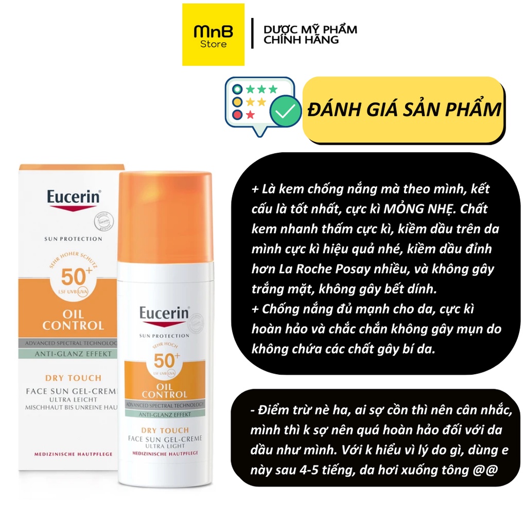 Video giới thiệu sản phẩm kem chống nắng Eucerin Oil Control kiểm soát dầu cho da dầu mụn 50ml MnB Store. Nguồn: Shopee.