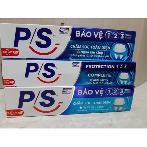 Kem đánh răng P/S bảo vệ 123 chăm sóc toàn diện 240g Cùng chào đón P/S bảo Vệ 123 thế hệ mới với bộ đôi khoáng chất Canxi & Flour ngừa sâu răng cho răng chắc khoẻ vượt trội. Hơn thế nữa, kem đánh răng P/S bảo Vệ 123 còn được tăng cường mạnh mẽ hoạt chất Perlite và hương bạc hà the mát cho răng trắng hơn và hơi thở thơm mát suốt ngày dài.