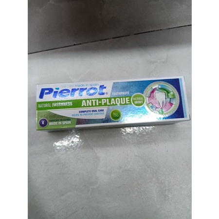 Kem đánh răng Pierrot chống hình thành mảng bám 75ML với fluoride giúp ngăn ngừa mảng bám, thức ăn thừa tích tụ sâu trong chân răng, chống sâu răng hiệu quả; allantoin giúp bảo vệ niêm mạc và tái tạo lại các tính chất ban đầu của răng, cho răng trắng sáng. Chiết xuất bạc hà cho cảm giác sảng khoái với hơi thở thơm mát dễ chịu Thành phần: Aqua, Sorbitol, Hydrated Silica, Sodium Lauryl Sulfate, Cellulose Gum, Aroma, Sodium Monofluorophosphate, Titanium Dioxide, Sodium Methylparaben, Sodium Saccharin, Allantoin, Sodium Propylparaben, Citric Acid, Limonene