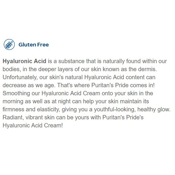 Giới thiệu Kem dưỡng ẩm chống nhăn Puritan's Pride Hyaluronic Acid Beauty Cream 4oz