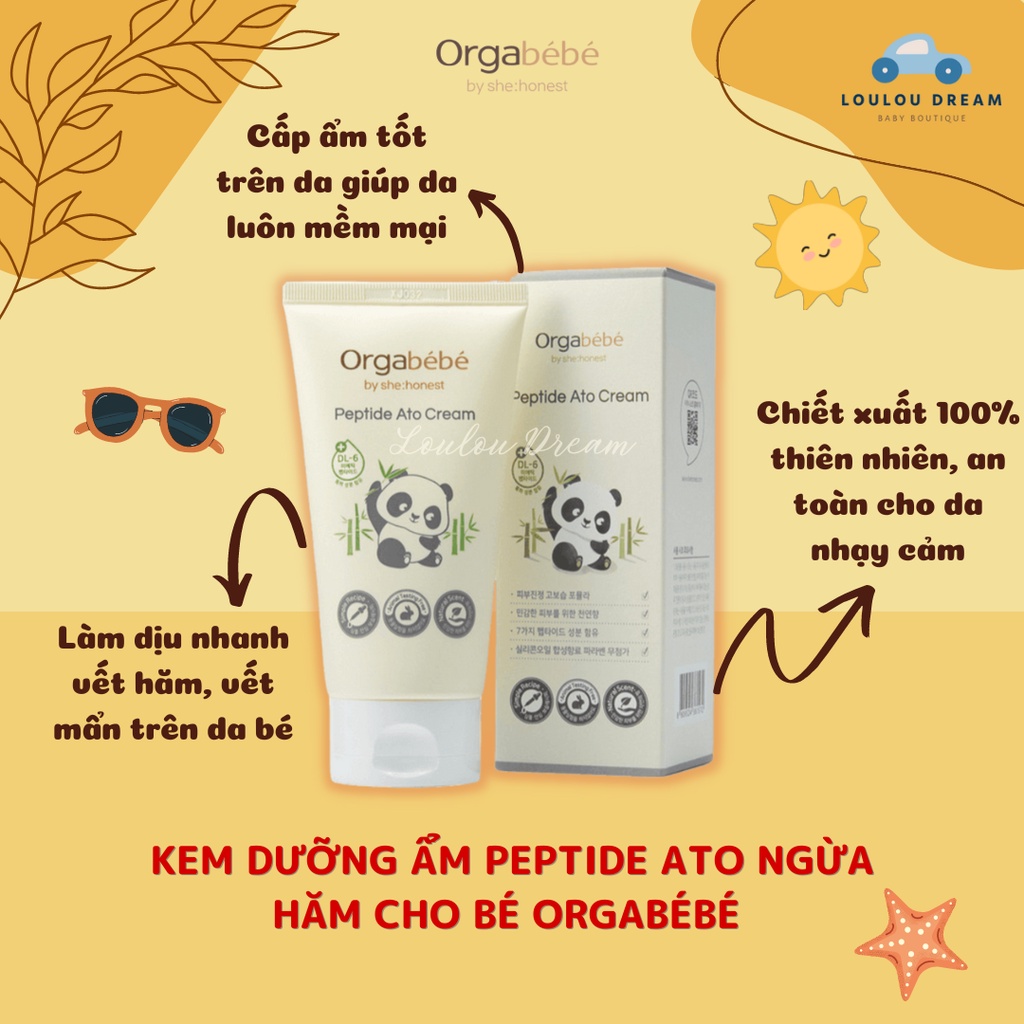Giới thiệu Kem dưỡng ẩm Peptide Ato Orgabebe hữu cơ lành tính ngừa hăm cho bé từ sơ sinh Hàn Quốc 150ml [CHÍNH HÃNG]