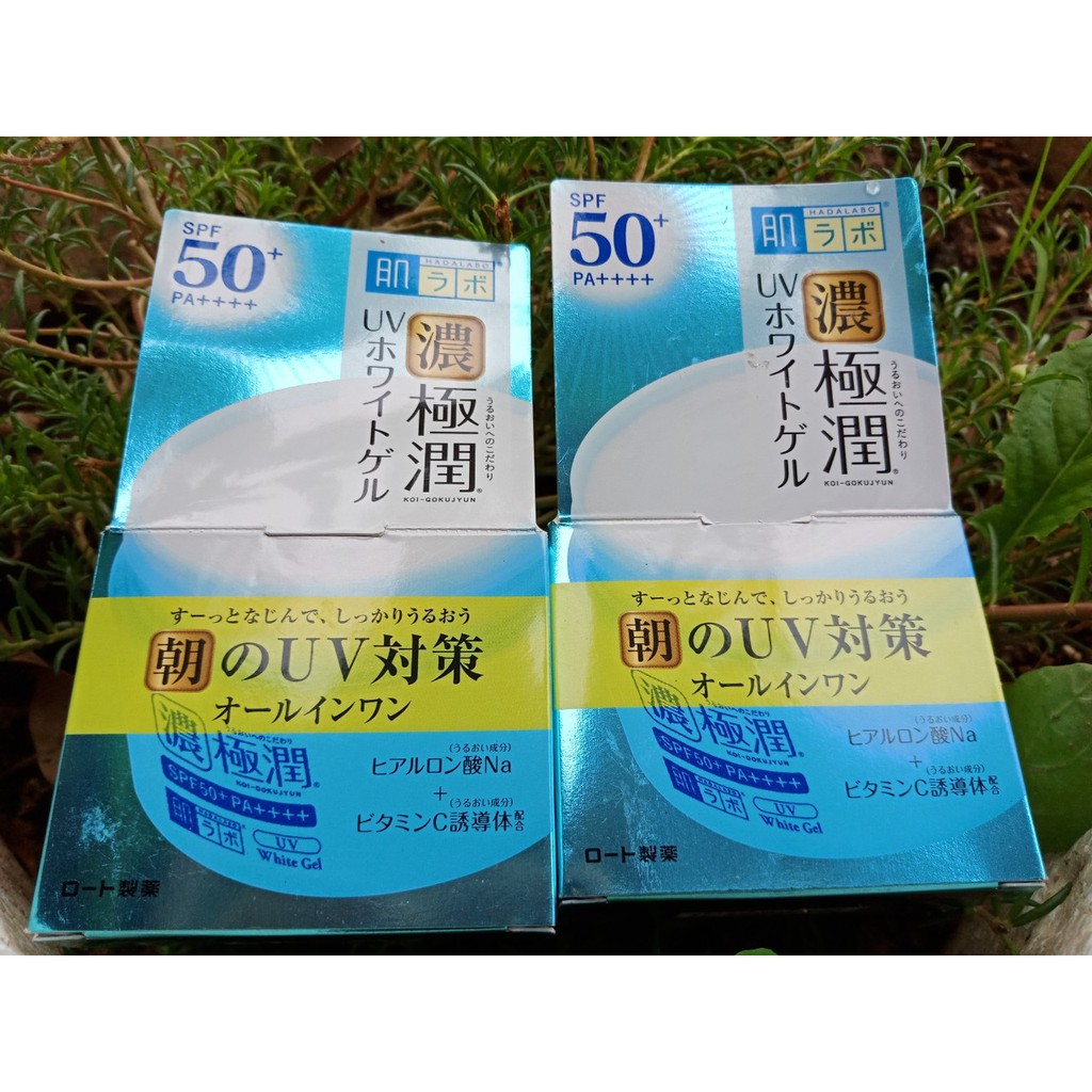 💕Kem dưỡng da Hada Labo Gokujyun Hyaluronic Nhật Bản nằm trong top những sản phẩm bán chạy nhất của tập đoàn Rohto – Mentholatum, sản phẩm dạng Gel tiện dụng này thay thế cho các bước dưỡng da nhiều công đoạn như nước hoa hồng, sữa dưỡng, tinh chất…với kem dưỡng da Hada Labo Gokujyun Hyaluronic Nhật Bảnchỉ cần 1 công đoạn duy nhất vô cùng tiện lợi. 💦Đầu tiên phải kể đến là bảng thành phần hoàn toàn lành tính của kem dưỡng da Hada Labo Gokujyn Super Hyaluronic Acid: Không chứa cồn, không chứa dầu, không chất tạo màu, không hương liệu, vì vậy mà kem dưỡng da Hala dabo phù hợp cả với làn da nhạy cảm nhất. 💦Arbutin tinh khiết có tác dụng ngăn chặn sự hình thành melanin thông qua việc ức chế quá trình tổng hợp và chuyển hóa enzyme tyrosinase. Không những thế, arbutin còn giúp ngăn ngừa tia UVB giúp bảo vệ da tránh tác hại do ánh nắng mặt trời. 💦Vitamin C chống các gốc tự do, chống oxy hóa, làm mờ sắc tố Melanin giúp da trắng sắng, cung cấp collagen giúp da đàn hồi và đầy sức sống. Kem dưỡng HadaLabo UV White Gel với 7 công dụng trong 1 sản phẩm, giúp thay thế 7 bước: (1) NƯỚC HOA HỒNG + (2) SỮA DƯỠNG + (3) SERUM + (4) KEM DƯỠNG + (5) MẶT NẠ + (6) KEM CHỐNG NẮNG + (7) KEM LÓT. Chỉ số chống nắng SPF50+ PA++++ (cao nhất dành cho da mặt) giúp chống nắng hiệu quả, bảo vệ da khỏi tia UV gây hại.
