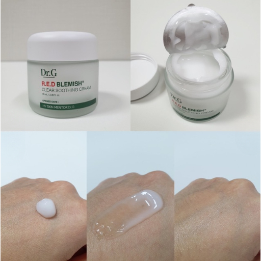 Kem Dưỡng Dr.G R.E.D Blemish Clear Soothing Cream 70ml là sản phẩm dưỡng da giúp làm dịu và phục hồi làn da đang bị kích ứng mẩn đỏ nhờ phức hợp 10–CICA từ rau má cùng 2% Niacinamide. Ngoài ra, sản phẩm còn giúp dưỡng ẩm, hỗ trợ kiềm soát dầu nhờn, củng cố hàng rào bảo vệ cho da.