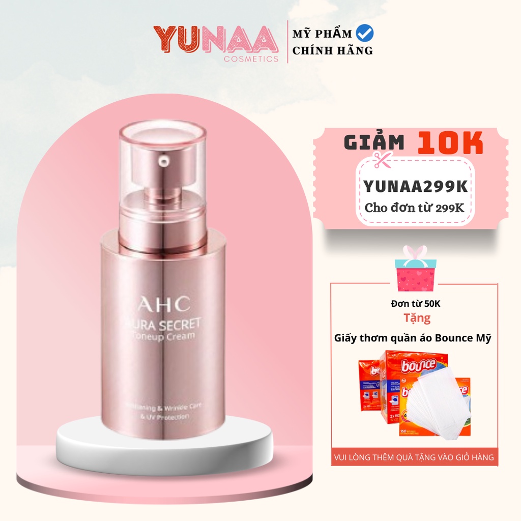 Kem dưỡng trắng hồng nâng tông da AHC Aura Secret Tone Up Cream Chai 50ml : 350k Sáng hồng - Căng bóng - Mềm mượt Trắng da - Chống nhăn - Chống nắng SPF 30/PA++