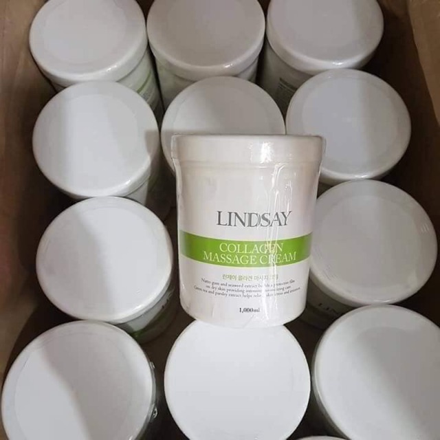 🍀🌿KEM MASAGE LINDSAY Hàn quốc hàng chuẩn an toàn lành tính mà Massage đầm không bị khô rít tay Kem mát- xa Collagen 1000ml Với tinh chất đậu nành lên men và rong biển tạo da 1 lớp màng bảo vệ trên da khô cung cấp chăm sóc dưỡng ẩm chuyên sâu. Chiết xuất trà xanh giúp giảm căng thẳng và kích ứng . Bổ sung collagen mang lại làn da tươi trẻ , khỏe mạnh . Dành cho mọi loại da